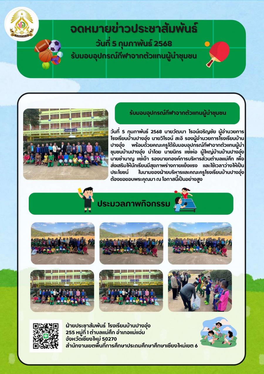 รับมอบอุปกรณ์กีฬาจากตัวแทนผู้นำชุมชน