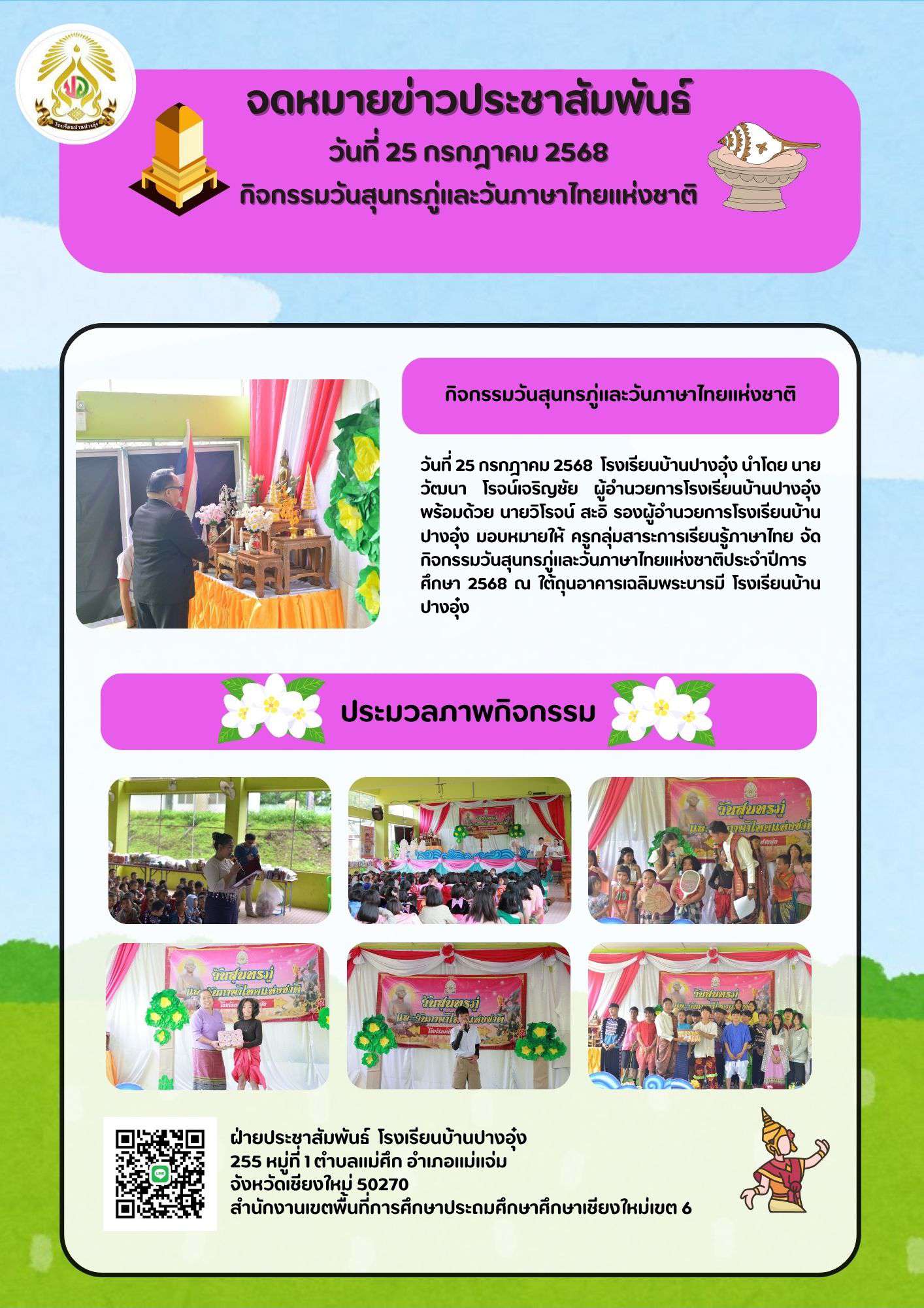 วันที่ 25 กรกฎาคม 2568 กิจกรรมวันสุนทรภู่และวันภาษาไทยแห่งชาติ