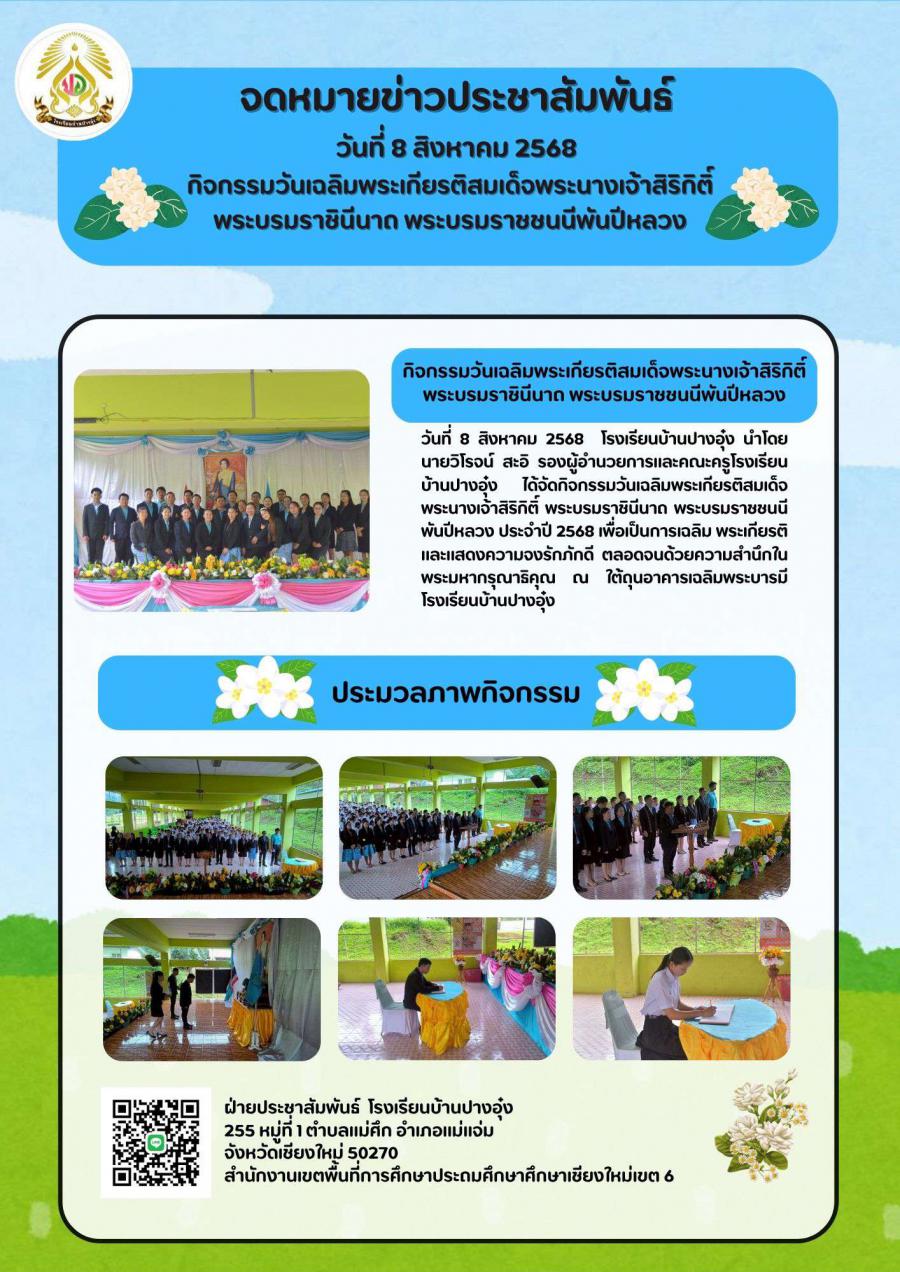 วันที่ 8 สิงหาคม 2568 กิจกรรมวันเฉลิมพระเกียรติสมเด็จพระนางเจ้าสิริกิติ์ พระบรมราชินีนาถ พระบรมราชชนนีพันปีหลวง