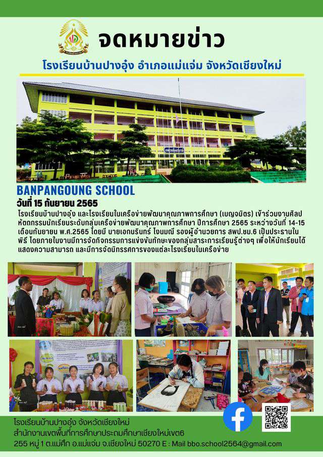 โรงเรียนบ้านปางอุ๋ง และโรงเรียนในเครือข่ายพัฒนาคุณภาพการศึกษา (เบญจมิตร) เข้าร่วมงานศิลปหัตถกรรมนักเรียนระดับกลุ่มเครือข่ายพัฒนาคุณภาพการศึกษา ปีการศึกษา 2565