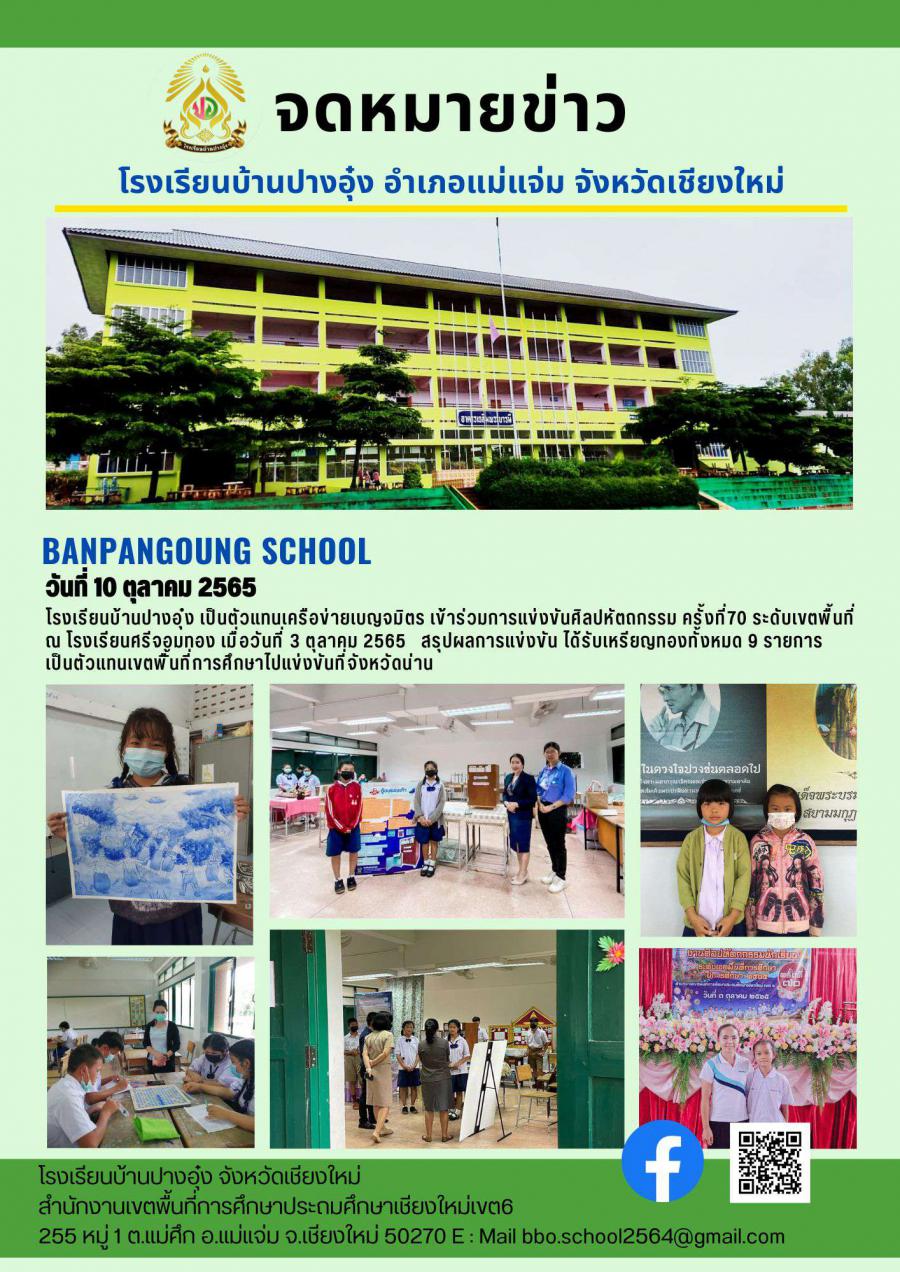 โรงเรียนบ้านปางอุ๋ง เป็นตัวแทนเครือข่ายเบญจมิตร เข้าร่วมการแข่งขันศิลปหัตถกรรม ครั้งที่70 สรุปผลได้รับเหรียญทองทั้งหมด 9 รายการ เป็นตัวแทนเขตพื้นที่การศึกษาประถมศึกษาเขต 6 ไปแข่งขันที่จังหวัดน่าน