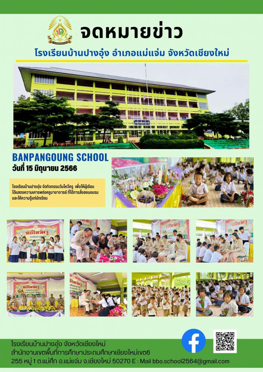 โรงเรียนบ้านปางอุ๋ง จัดกิจกรรมวันไหว้ครู เพื่อให้ผู้เรียน ได้แสดงความเคารพต่อครูบาอาจารย์ ที่ได้การสั่งสอนอบรม และให้ความรู้แก่นักเรียนประจำปี2566
