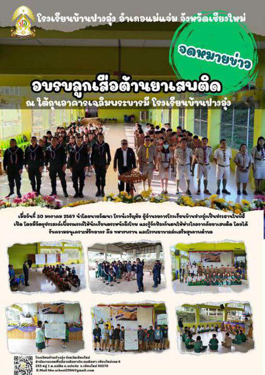 อบรมลูกเสือต้านยาเสพติด โดยมีทั้งหมด 3 ฐาน 1.ฐานยาเสพติด (ทหารพราน) 2.ฐานเพศวิถี (โรงพยาบาลส่งเสริมสุขภาพตำบล) 3.ฐานจราจรและระเบียบวินัย (ทหารพราน)