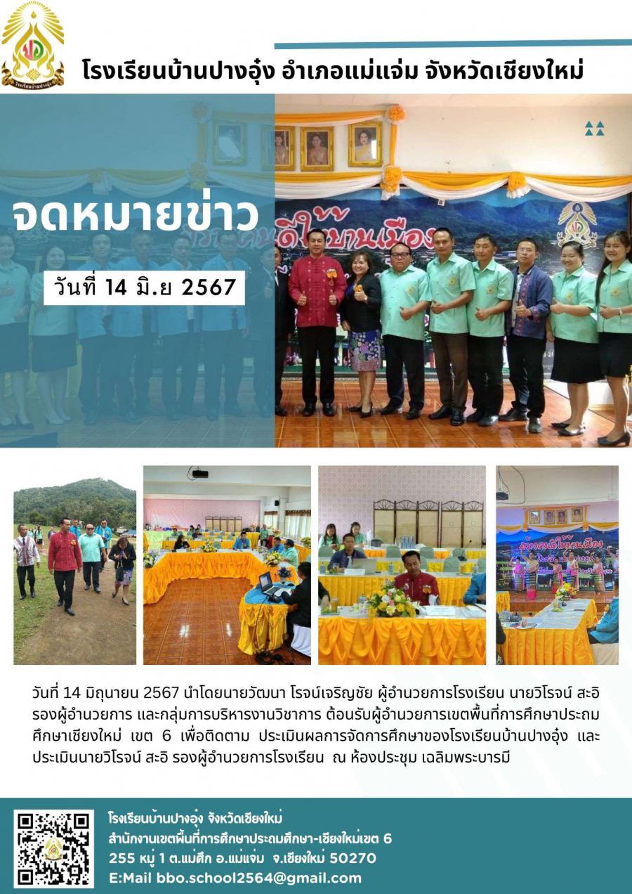 ต้อนรับผู้อำนวยการเขตพื้นที่การศึกษาประถมศึกษาเชียงใหม่ เขต 6 เพื่อติดตาม ประเมินผลการจัดการศึกษาของโรงเรียนบ้านปางอุ๋ง และประเมินนายวิโรจน์ สะอิ รองผู้อำนวยการโรงเรียน ณ ห้องประชุม เฉลิมพระบารมี