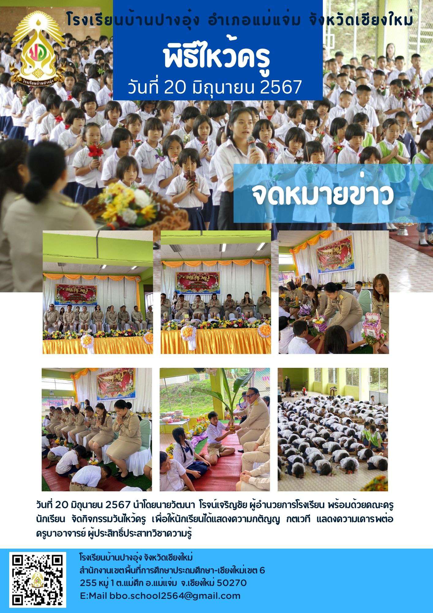 • โรงเรียนบ้านปางอุ๋ง โดยคณะผู้บริหาร คณะครูและบุคลากรทางการศึกษาและนักเรียนร่วมกันจัดกิจกรรมรณรงค์ต้อนทุจริต ประจำปีการศึกษา 2567