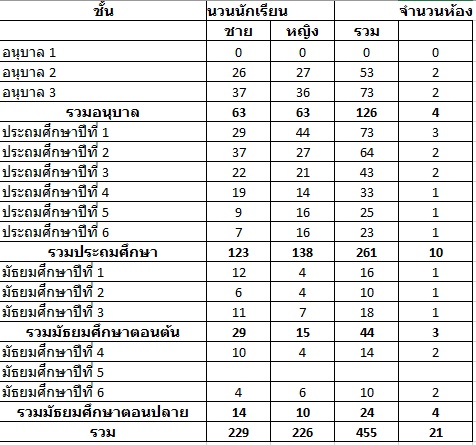 ข้อมูลนักเรียน ภาคเรียนที่ 1 ปีการศึกษา 2567 (ณ 10 มิถุนายน 2567)