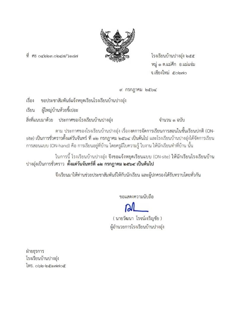 แจ้งหยุดเรียนโรงเรียนบ้านปางอุ๋ง