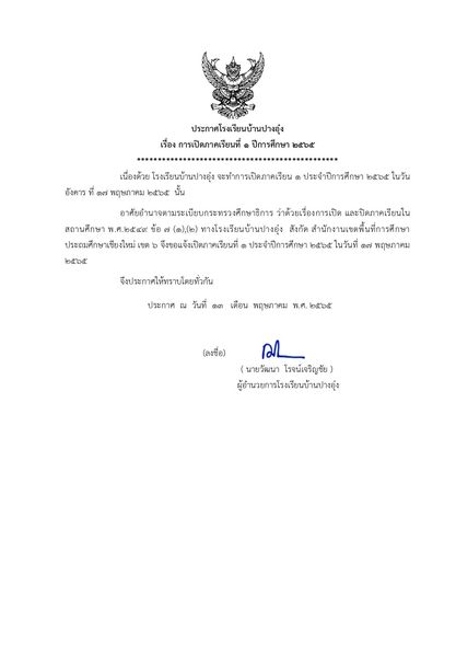โรงเรียนบ้านปางอุ๋ง เปิดภาคเรียนที่ 1 ปีการศึกษา 2565