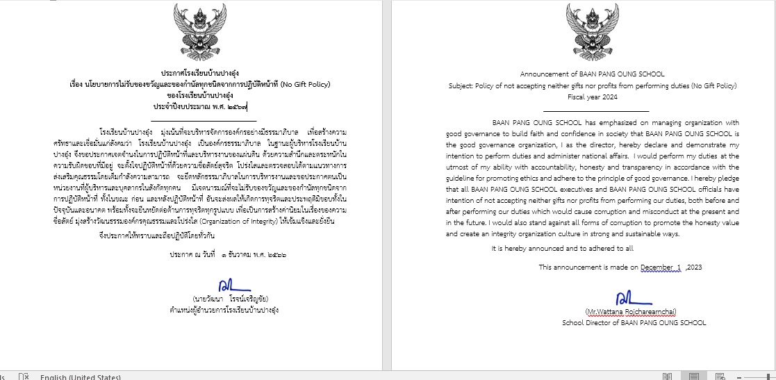 • โรงเรียนบ้านปางอุ๋ง โดยคณะผู้บริหาร คณะครูและบุคลากรทางการศึกษาและนักเรียนร่วมกันจัดกิจกรรมรณรงค์ต้อนทุจริต ประจำปีการศึกษา 2567